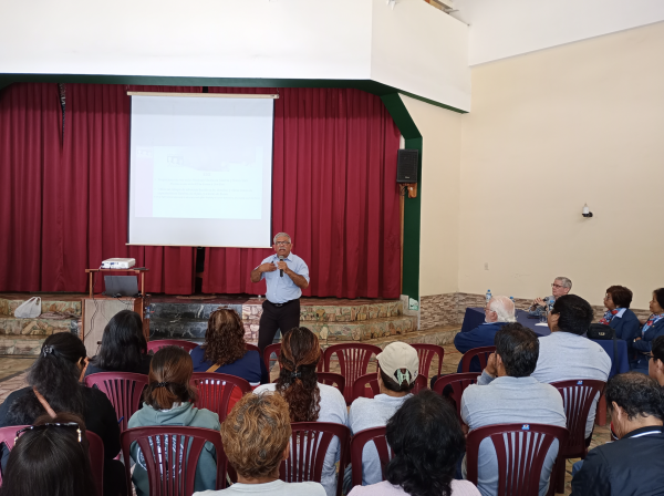 During his trip, Tino had a busy schedule full of activities and meetings with multiple groups of strategic partners, mainly schools associated with DER. Through interactive sessions full of questions and comments, Tino presented to schools in Latin America on ERI’s work at the United Nations and their collaboration with many projects, schools and other organisations around the globe. Tino visited 60 teachers from the Franciscan School Santa Rosa de Barranco in Lima, followed by the Christian Brothers’ School Mundo Mejor in Chimbote, where 56 teachers and administrative staff participated (pictured). Tino also visited the Alcanzando Nuevos Horizontes (Reaching for New Horizons) project, an education project in a human settlement on the outskirts of Chimbote, which is supported by ERD and Misean Cara. Tino encouraged teachers to participate in ERI’s Zoom workshops on human rights, social justice and eco-justice scheduled for 2024.